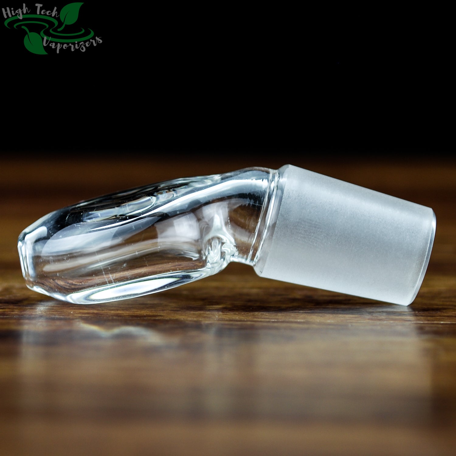 This is a angled mouthpiece with a 19mm male ground glass connection. For use in combination with a Ground Glass to Hose Adapter, or with a Vapor Tamer.